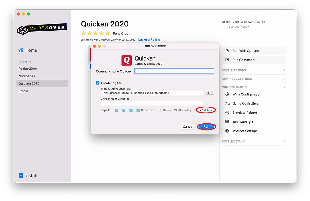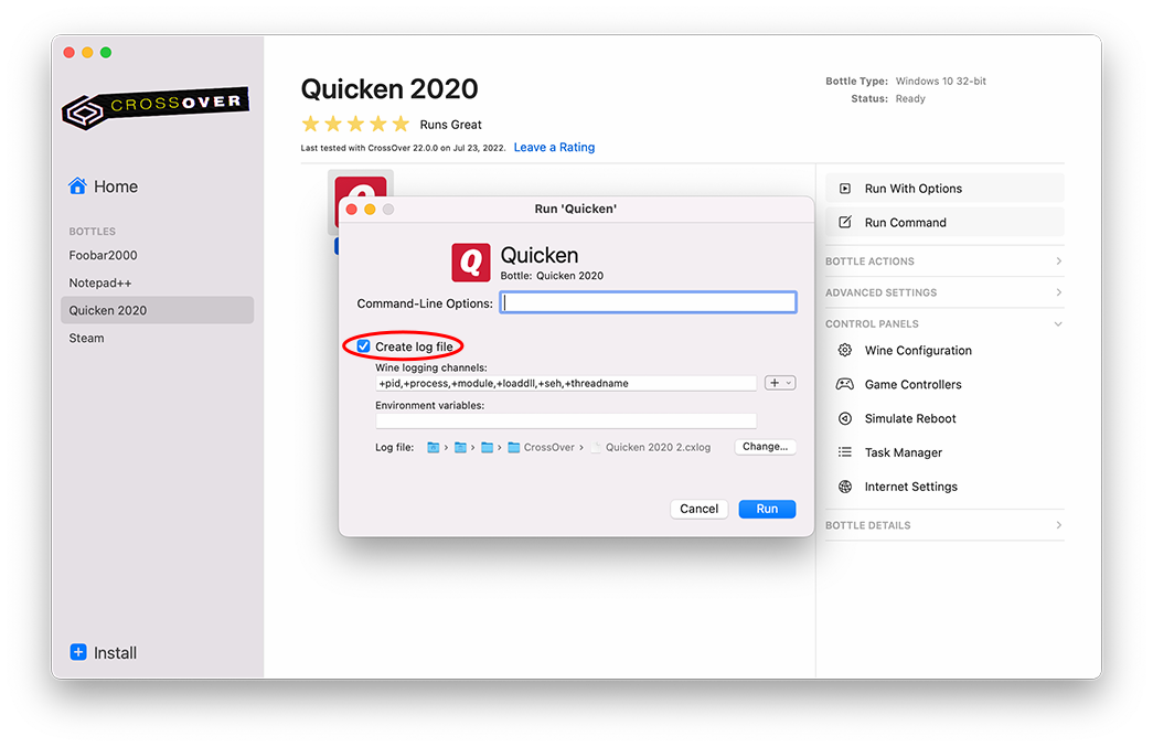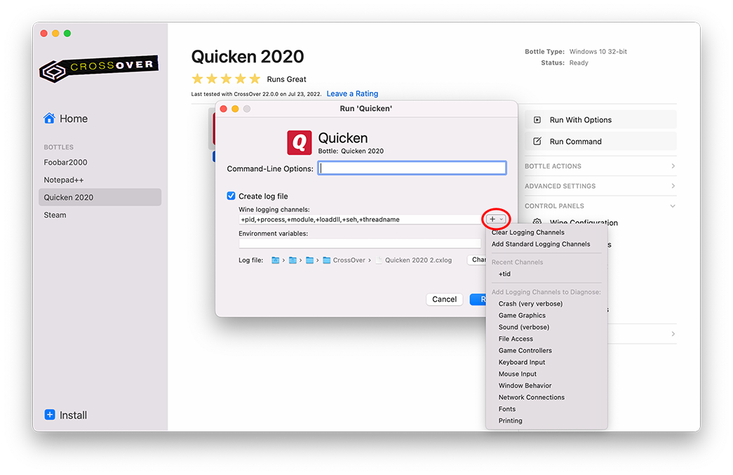 Capturing a log under CrossOver 14.x and earlier